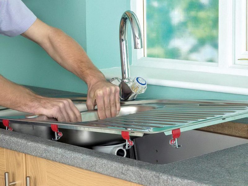 Использование опытными специалистами качественных крепежных элементов и современного инструмента позволяет гарантировать надежность и долговечность использования врезной раковины на кухне.